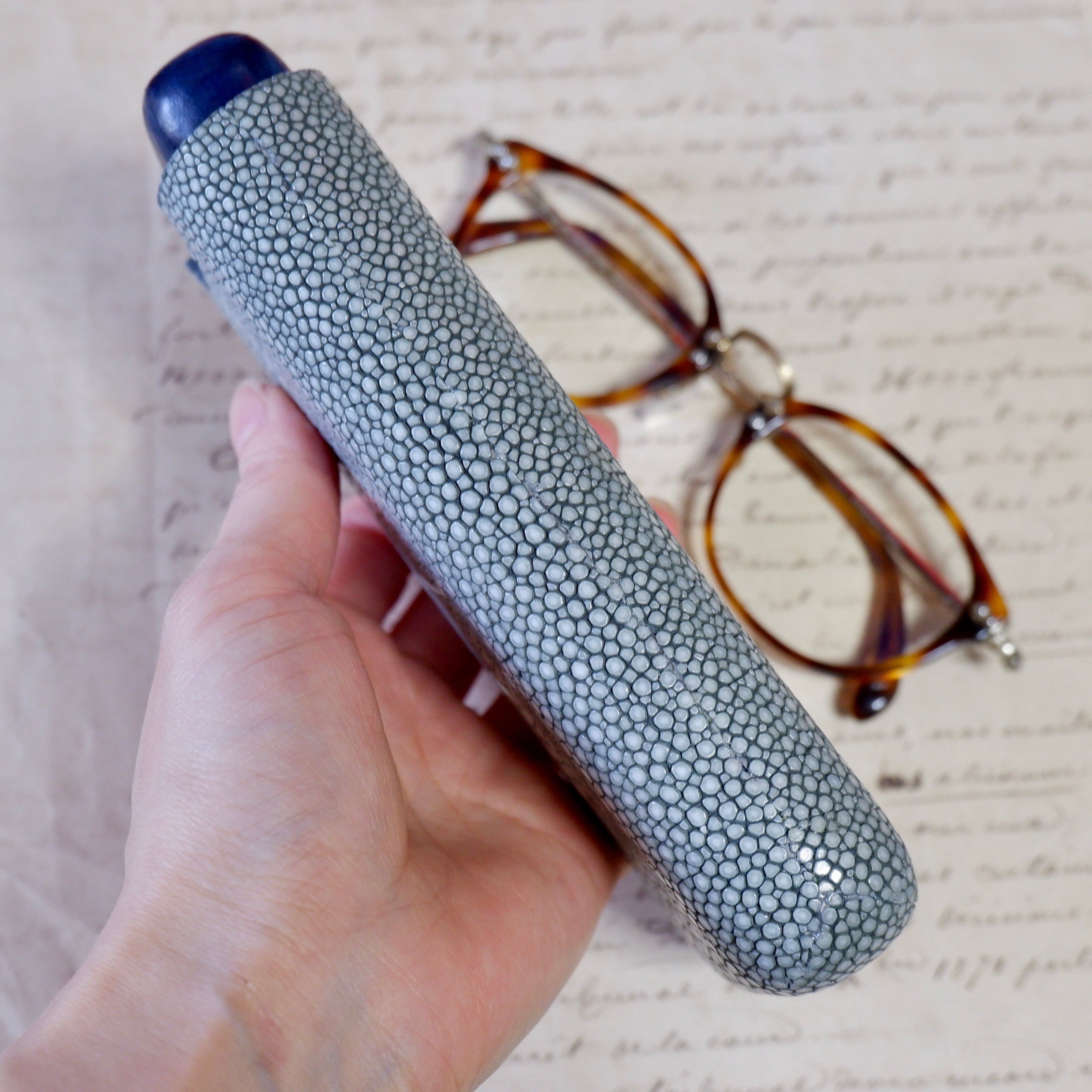 こちらは外側に、珍しいガルーシャ(エイ)の革を使用したLegameのオリジナルです。