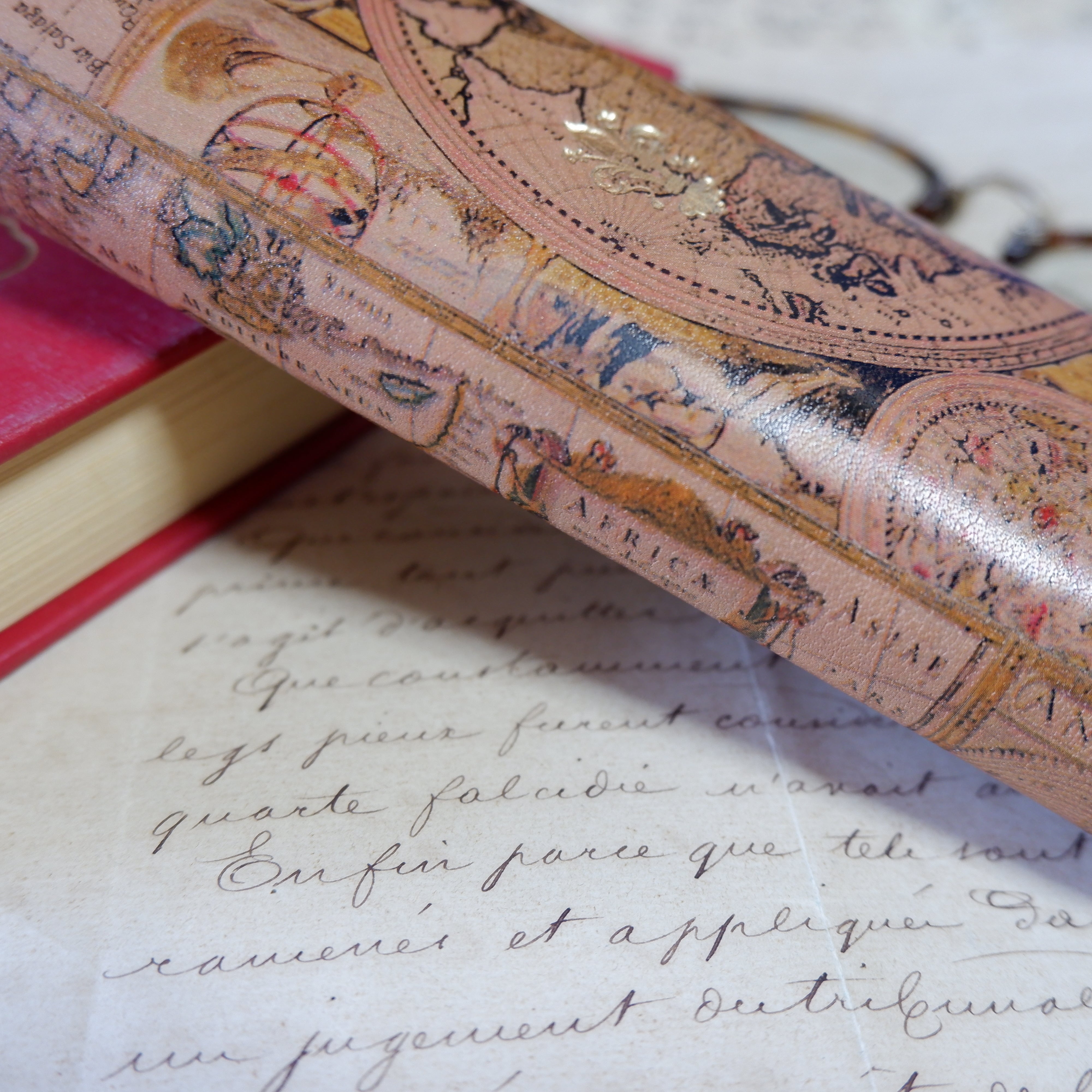 【即納】メガネケース〈SLIM〉/ Antique Map/ Natural × Wine