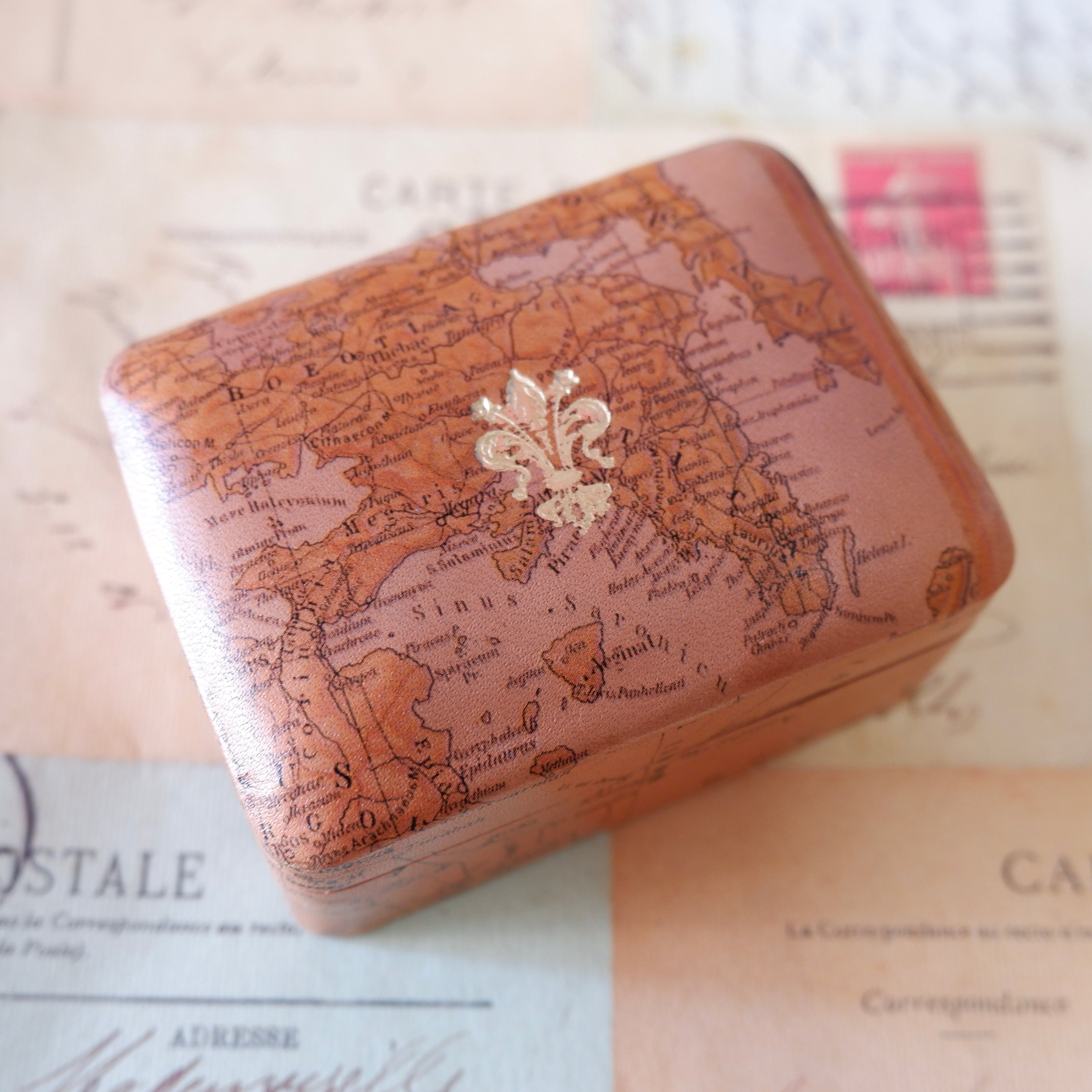 革100%でできたスクエア型のミニジュエリーボックスです。