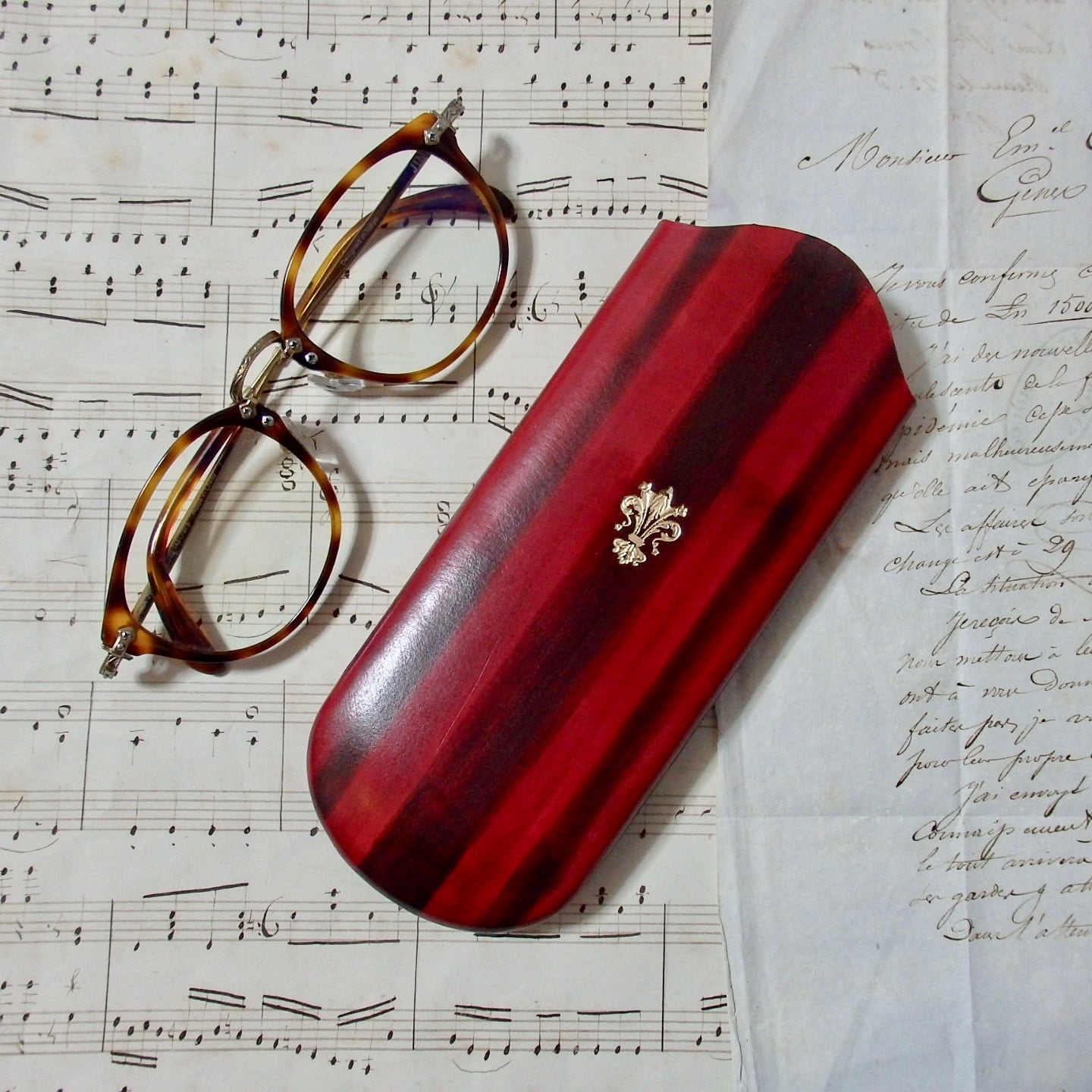 革のみでできた、シンプルでクラシックなフォルムのメガネケースです。
