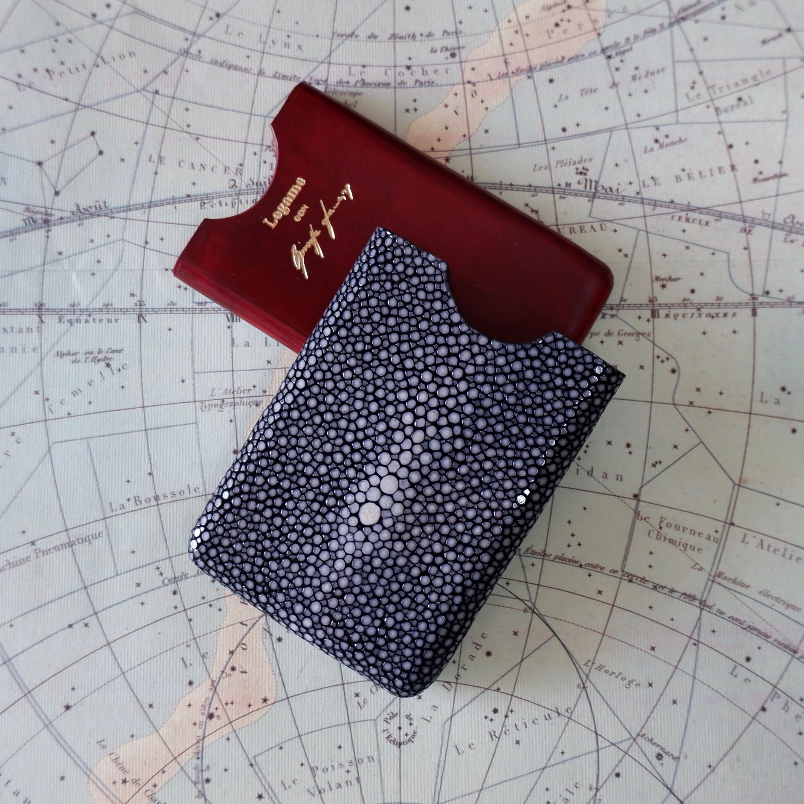 こちらは外側に、珍しいガルーシャ(エイ)の革を使用したLegameのオリジナルです。