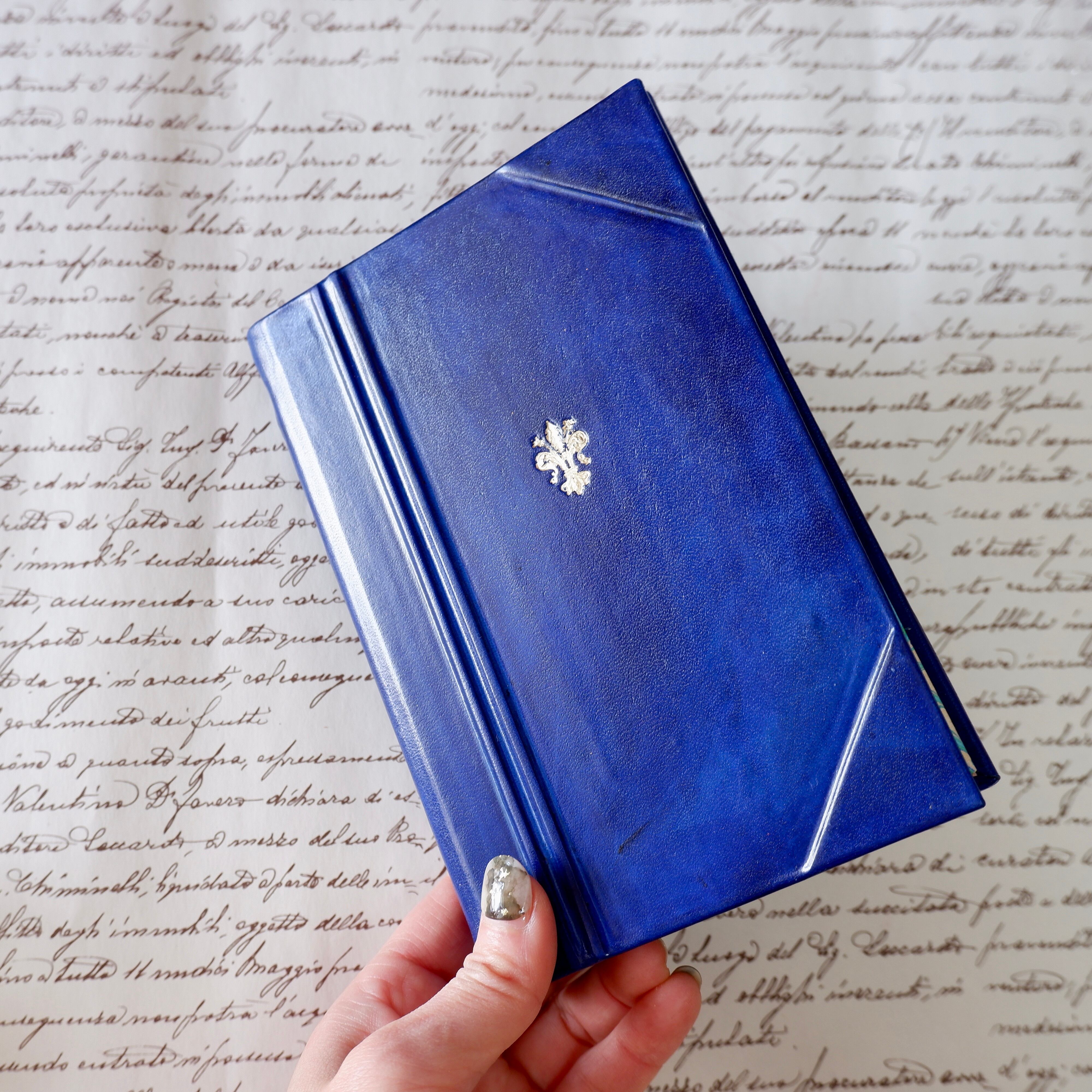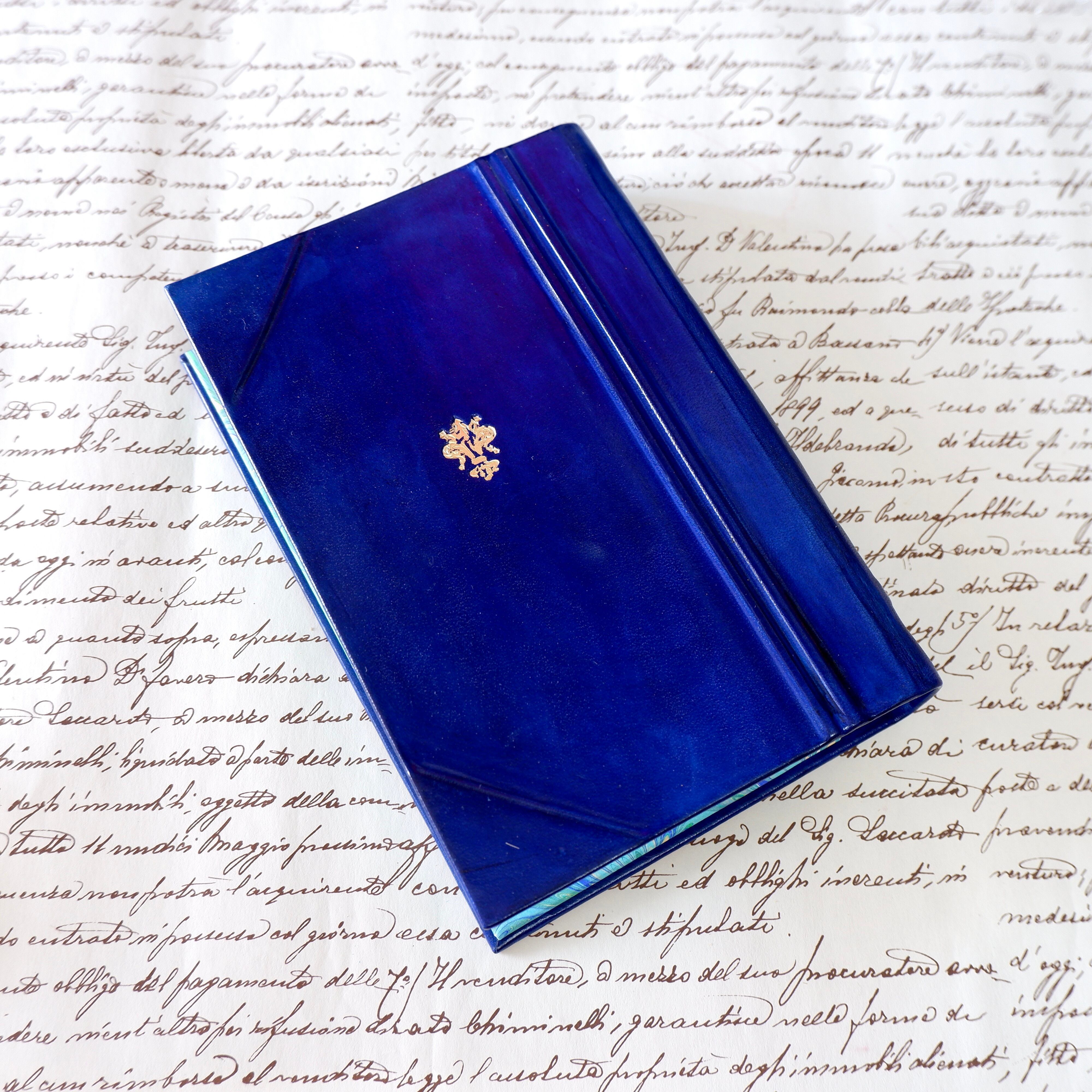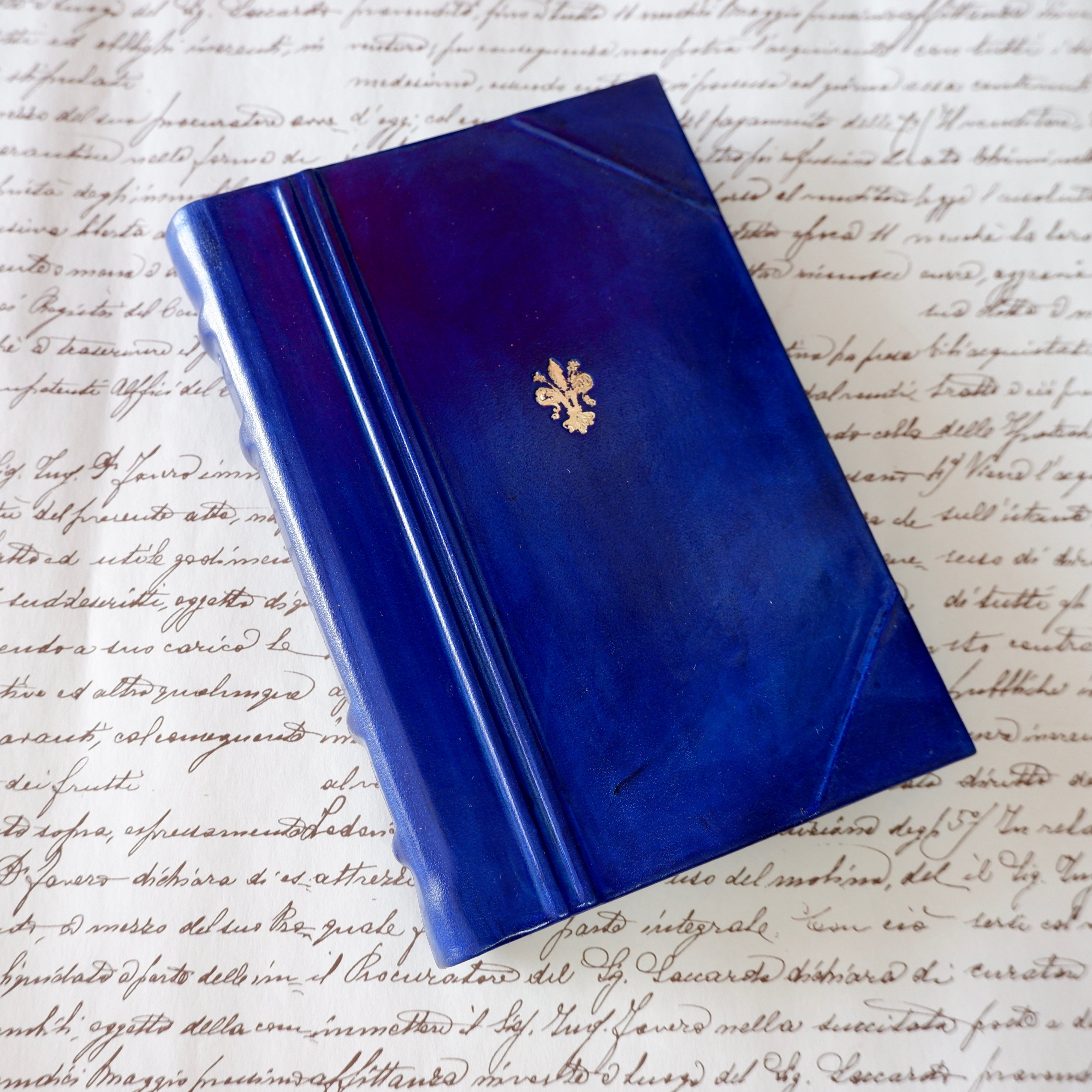 外側は手染めで鮮やかなロイヤルブルーに染色しています。使うほどに、落ち着いた色味へと変化して参ります。