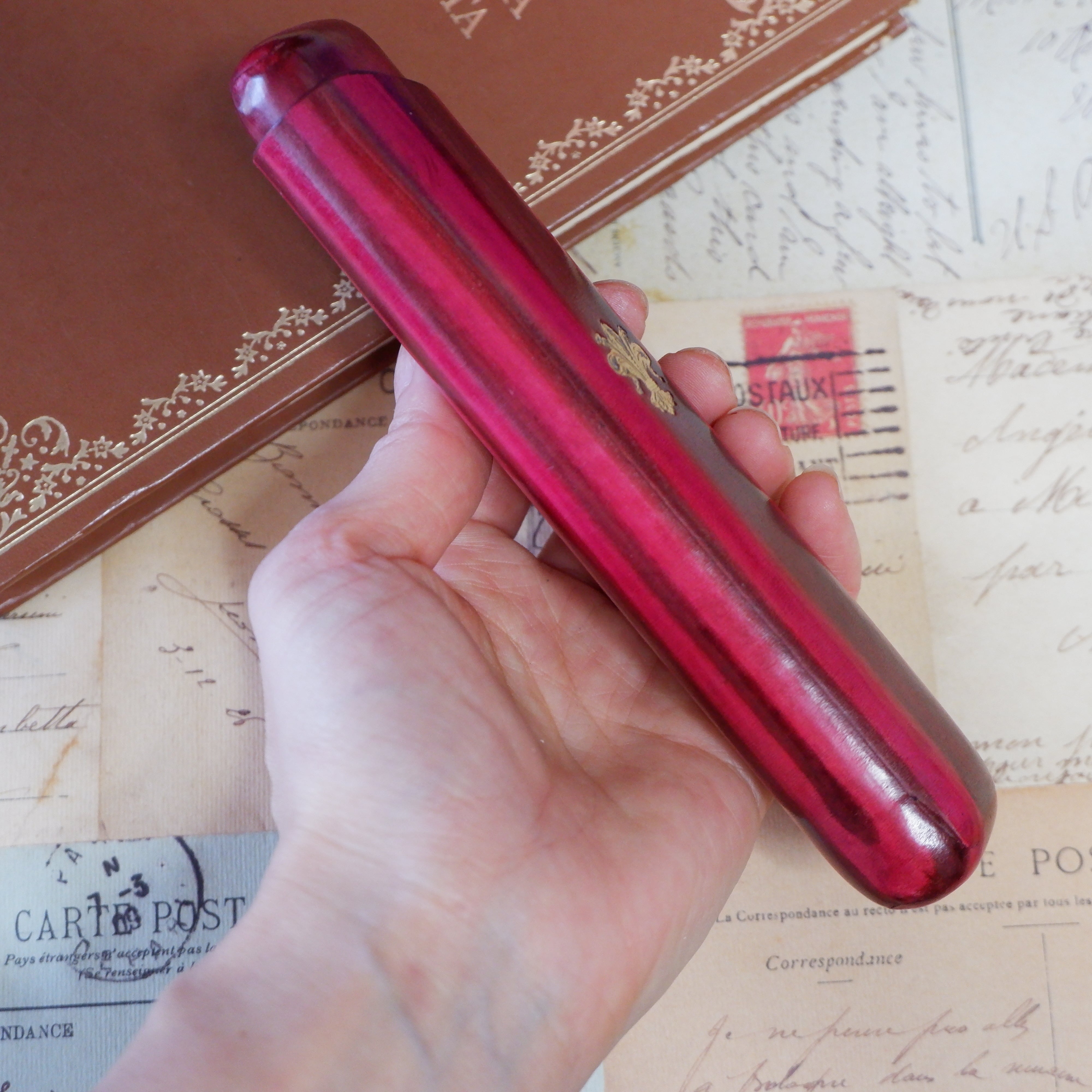 イタリア、芸術の都・フィレンツェに古くから伝わる技法を用いた、シームレスのペンケースです。引き出すタイプの、一本挿しの万年筆ケース、楕円型 “OVALE オヴァーレ”タイプです。